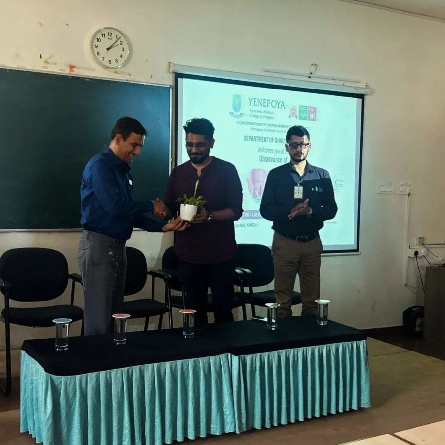 The Department of Shalya Tantra organized a Workshop and Hands-on Training on Ksharasutra Nirmana on the occasion of World Piles Day on 21 November 2025. Dr. Ashwin J. Shetty, Ayurveda Surgeon and Proctologist at Ksharapani Healthcare, Wound and Anorectal Speciality Clinic, Udupi, served as the resource person. The session provided in-depth practical exposure to the preparation and clinical relevance of Ksharasutra, benefiting students.